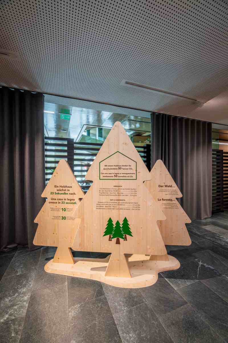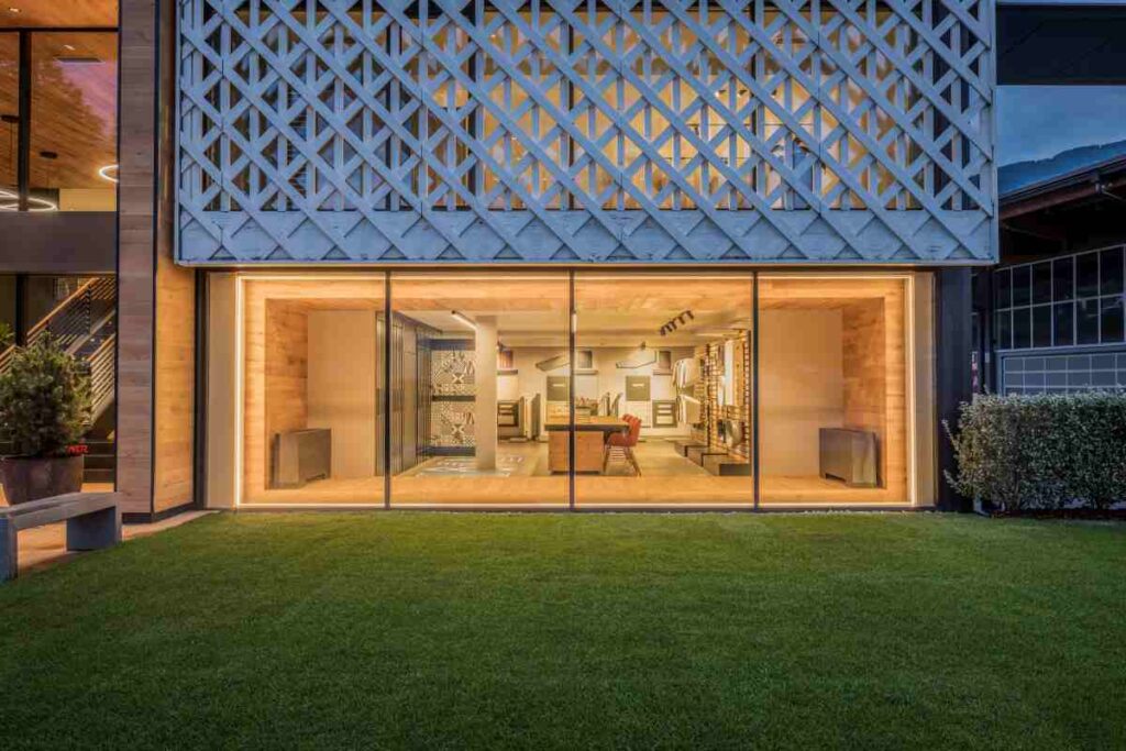 Il percorso si sviluppa attraverso 4 tappe – Prospettive Legno, Produzione, Laboratorio prove e Boutique – che raccontano, passo dopo passo, il processo costruttivo secondo la filosofia Rubner: dalla visione, alla fase di ideazione e progettazione e poi di realizzazione concreta, fino alla cura dei dettagli d’interni. I visitatori iniziano il percorso con una narrazione visiva e storica che ripercorre l’evoluzione dell’edilizia in legno e di Rubner nel corso degli anni. A partire dalla storia del legno e del bosco, attraverso un viaggio sensoriale, i visitatori possono scoprire le proprietà fisiche e organolettiche del legno. Si prosegue poi all’interno degli impianti produttivi, dove è possibile osservare come le tecnologie più avanzate si integrano con il know-how artigianale per dare vita a edifici completamente personalizzati. Un momento particolarmente significativo è rappresentato dalla visita al laboratorio prove, dove vengono testati materiali e strutture in termini di sicurezza, durabilità e impatto ambientale, dimostrando concretamente i vantaggi tecnici del legno rispetto ai materiali da costruzione convenzionali. A completare l’esperienza c’è infine Boutique, uno spazio di 700mq interamente dedicato alla creatività e all’ispirazione progettuale: un ambiente che raccoglie soluzioni di interior design, elementi per l’outdoor e sistemi tecnologici innovativi, pensati per aiutare i visitatori a immaginare e definire il proprio stile abitativo in modo consapevole e personalizzato.
